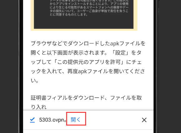 Google Play ストアにアクセスできない場合は、以下のAPKファイルからOpenVPNをインストールしてください。